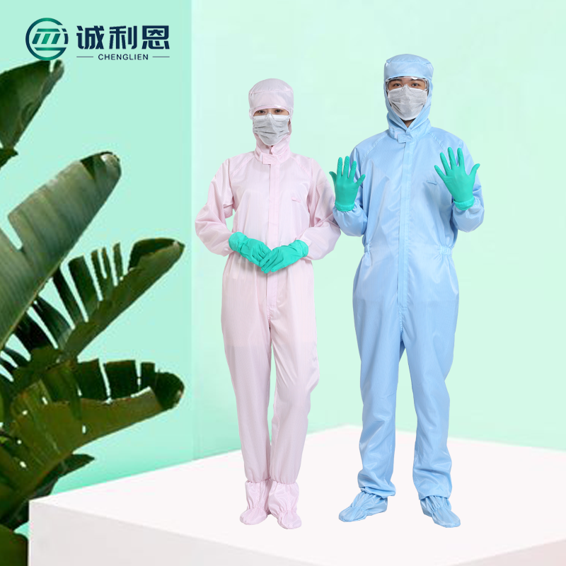 潔凈服經常被用于食品、醫藥、化妝品等行業,它的面料嵌入了導電絲,能有效地釋放人體靜電,不吸附微塵;面料本身是滌綸長絲,表面光滑、不發塵,用這種面料制成的潔凈服,具有良好的防靜電防塵性能。