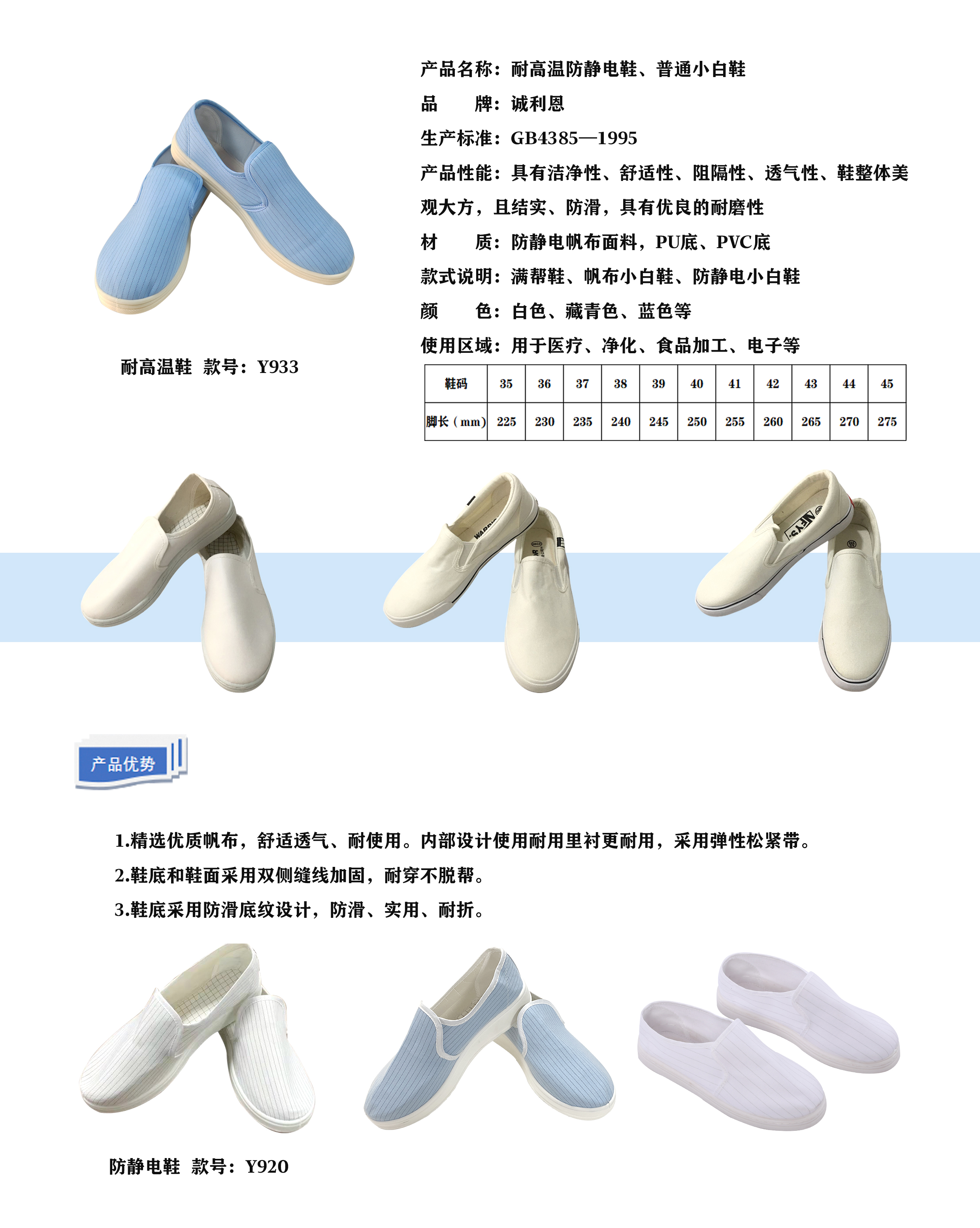 材 質(zhì):防靜電帆布面料、PU底、PVC底等